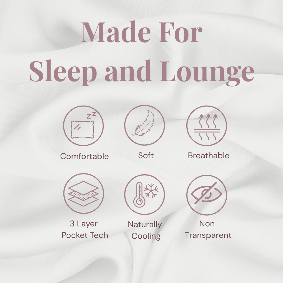 Meticulously designed for woman who wants comfort without compromise. Our pajama set features Triple Pocket Technology—three whisper-light fabric layers nested in each chest pocket to shield show-through.